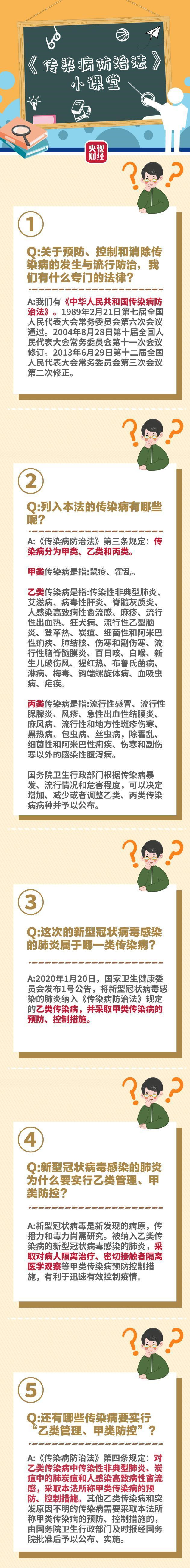 1月20日,國家衛(wèi)生健康委員會發(fā)布1號公告,決定將新型冠狀病毒感染的肺炎納入法定傳染病乙類管理,并采取甲類傳染病的預(yù)防、控制措施。疫情之下,如何做好傳染病防治?在我國傳染病分幾類?甲類、乙類傳染病分別有哪些?甲類防控措施又意味著什么?央視財經(jīng)今天推出《傳染病防治法》小課堂第一期,戳一圖↓↓轉(zhuǎn)發(fā)周知!